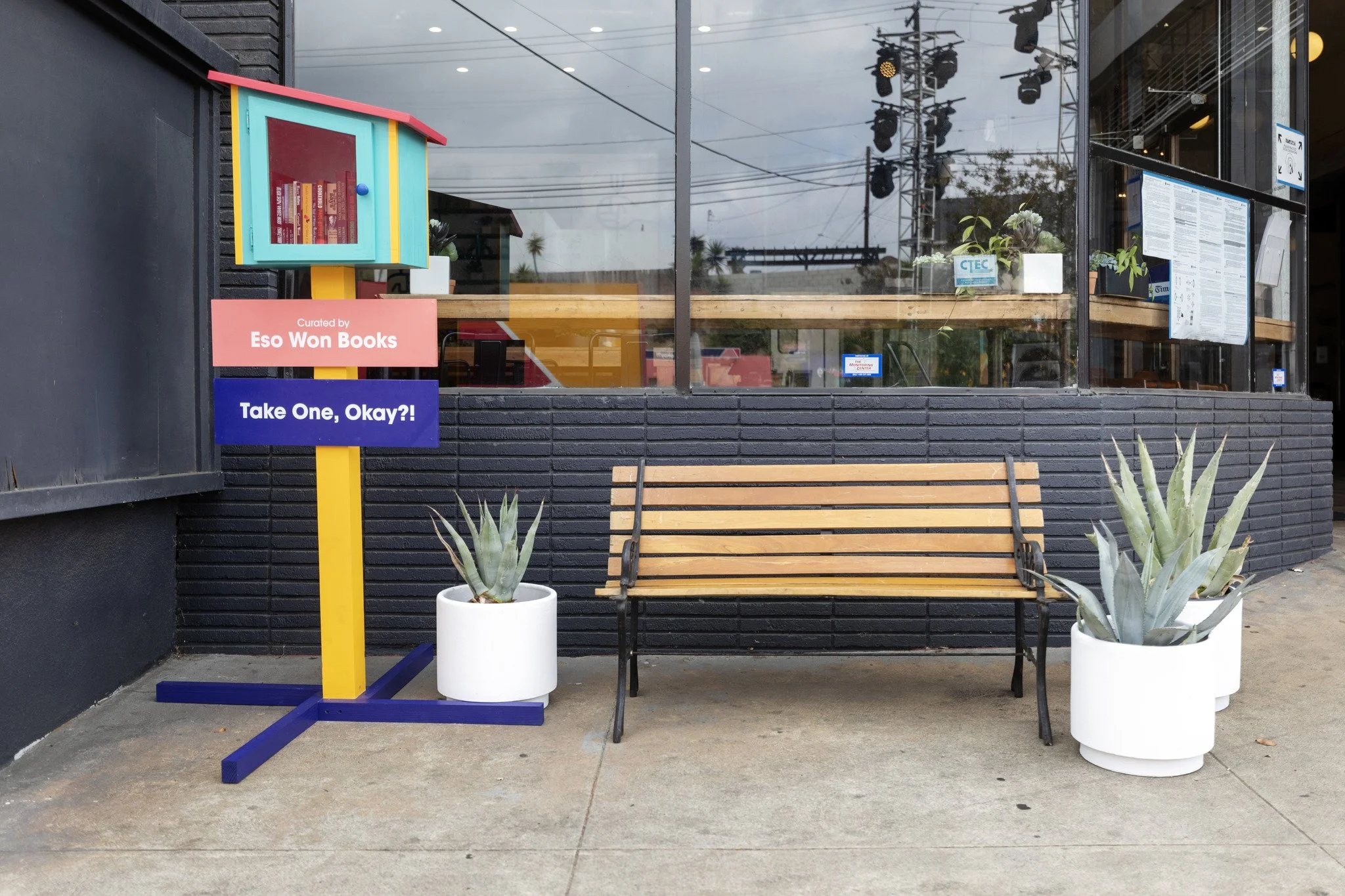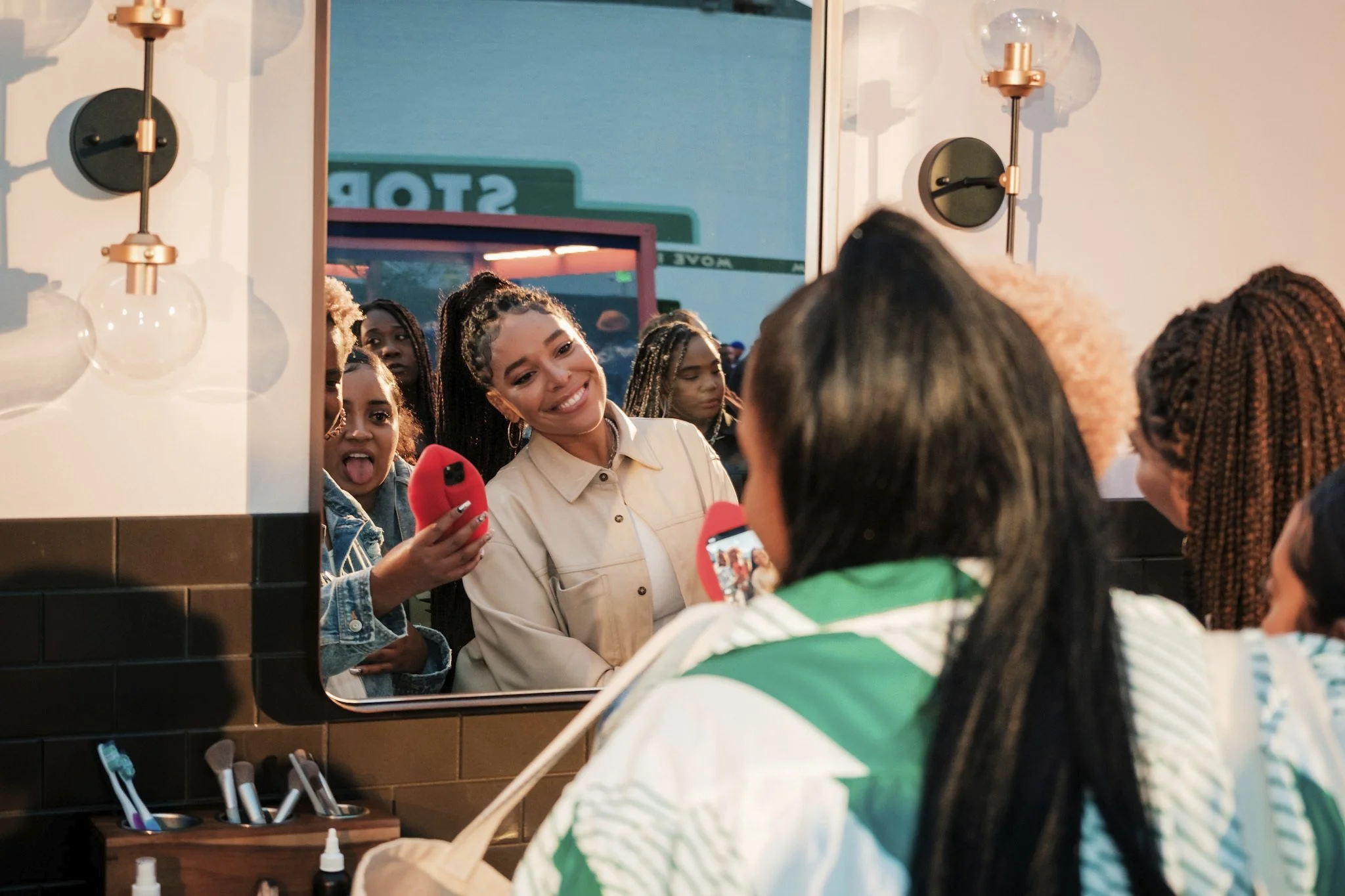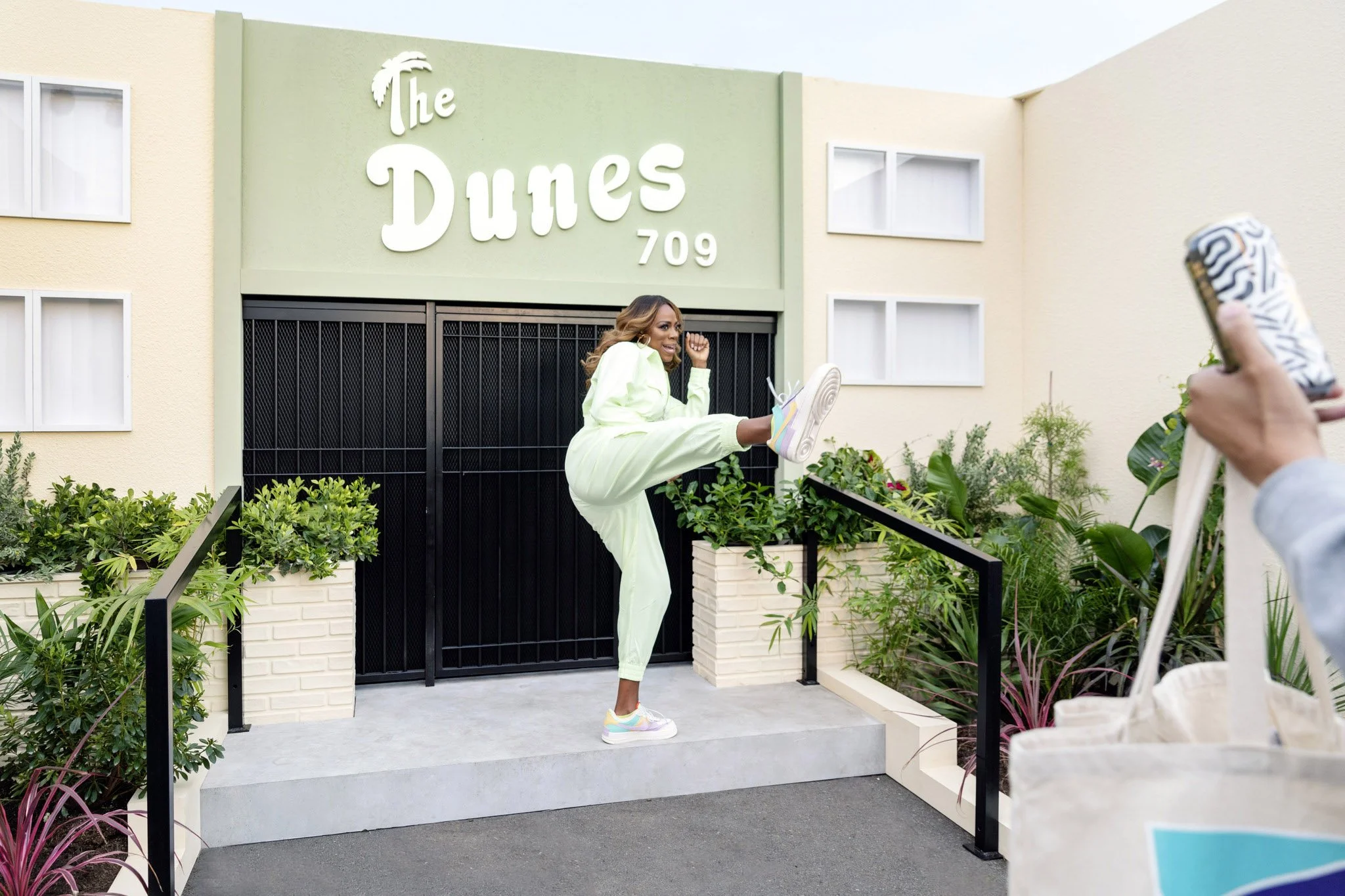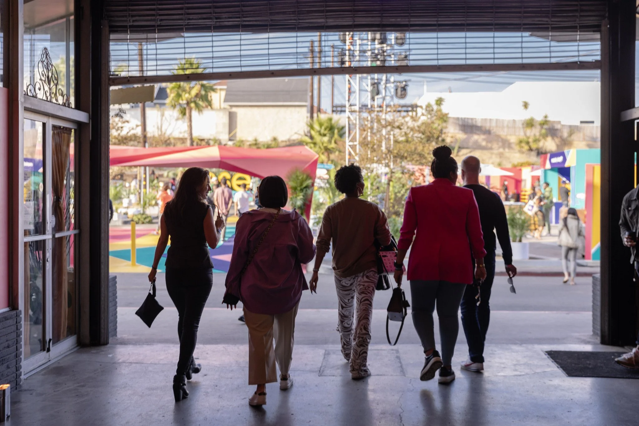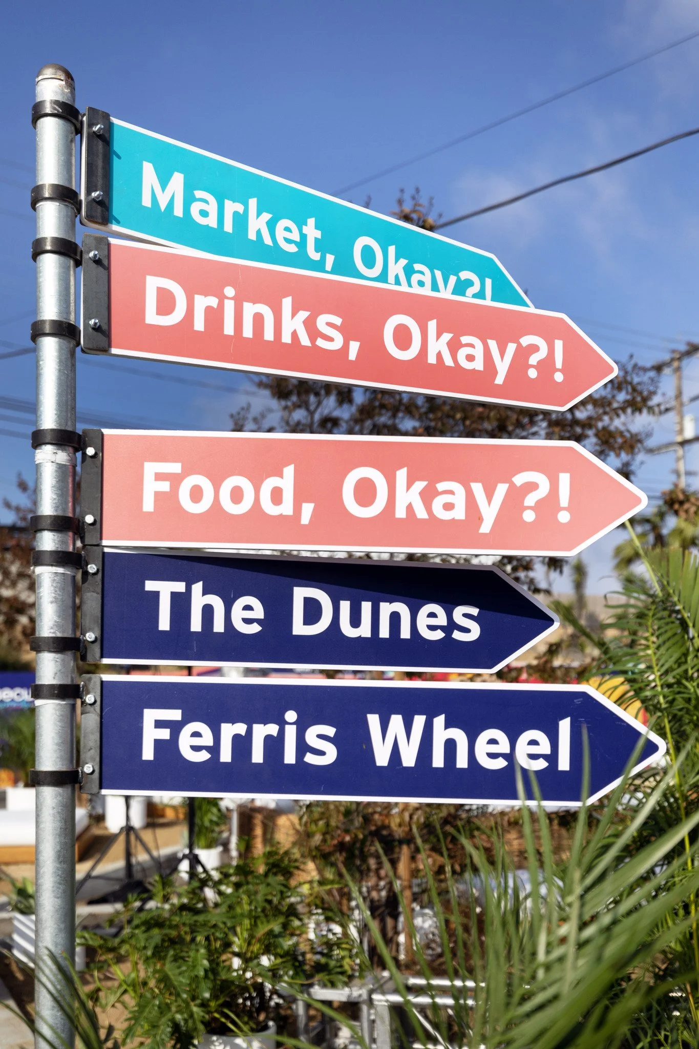 Design Direction: Bold, oversized shapes inspired by the blocks in Issa Rae’s southern Californian neighborhood dominated the graphic language while vignettes mimicked iconic settings from the show. Metal mesh, brightly-colored slats, and palms fit the airy LA aesthetic, and plenty of show references throughout kept the entire space on-theme. Each designated area was labeled with the moniker “…okay?!” to refer to the the way Issa’s character hypes up her best friends in the show.