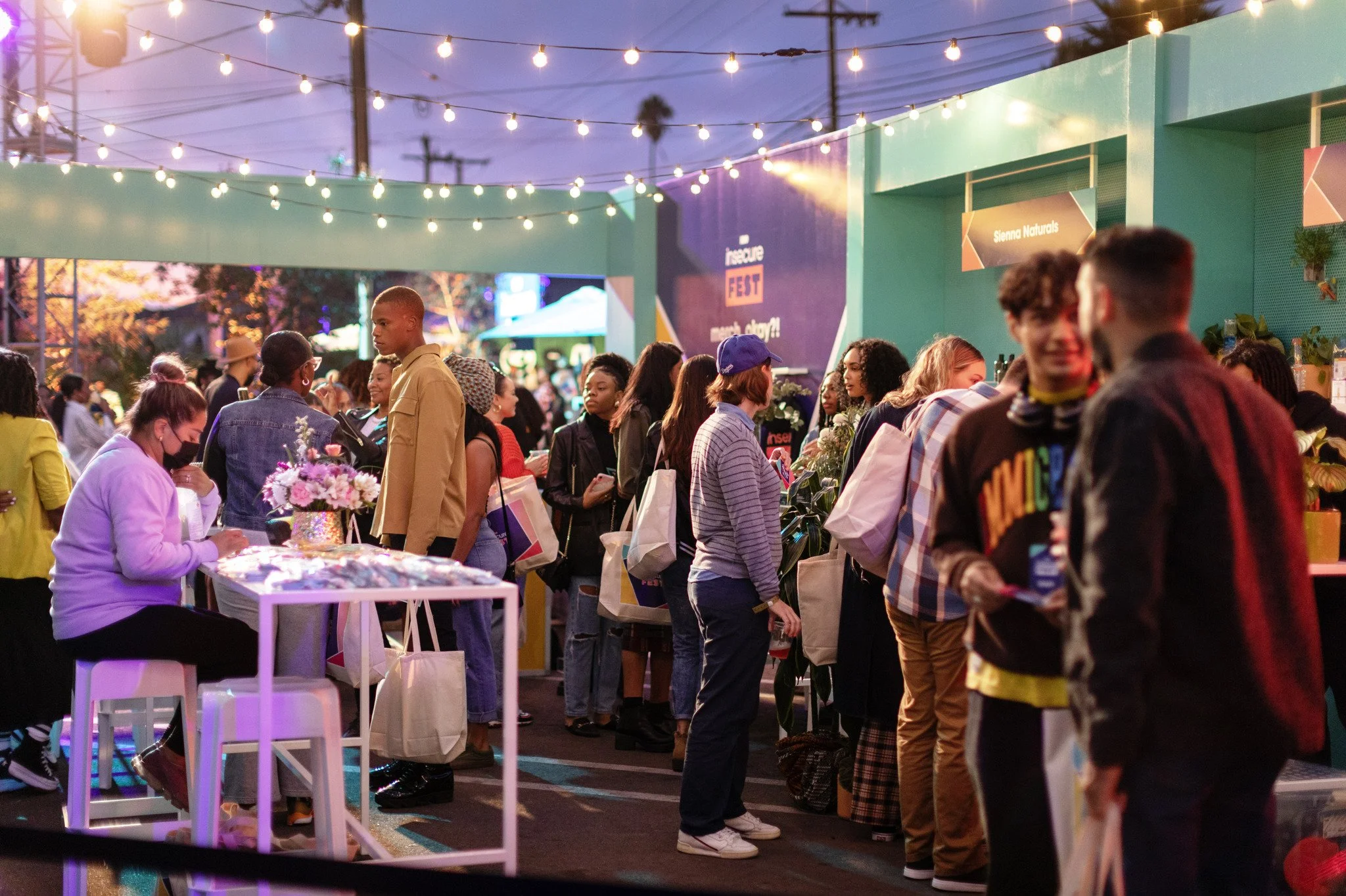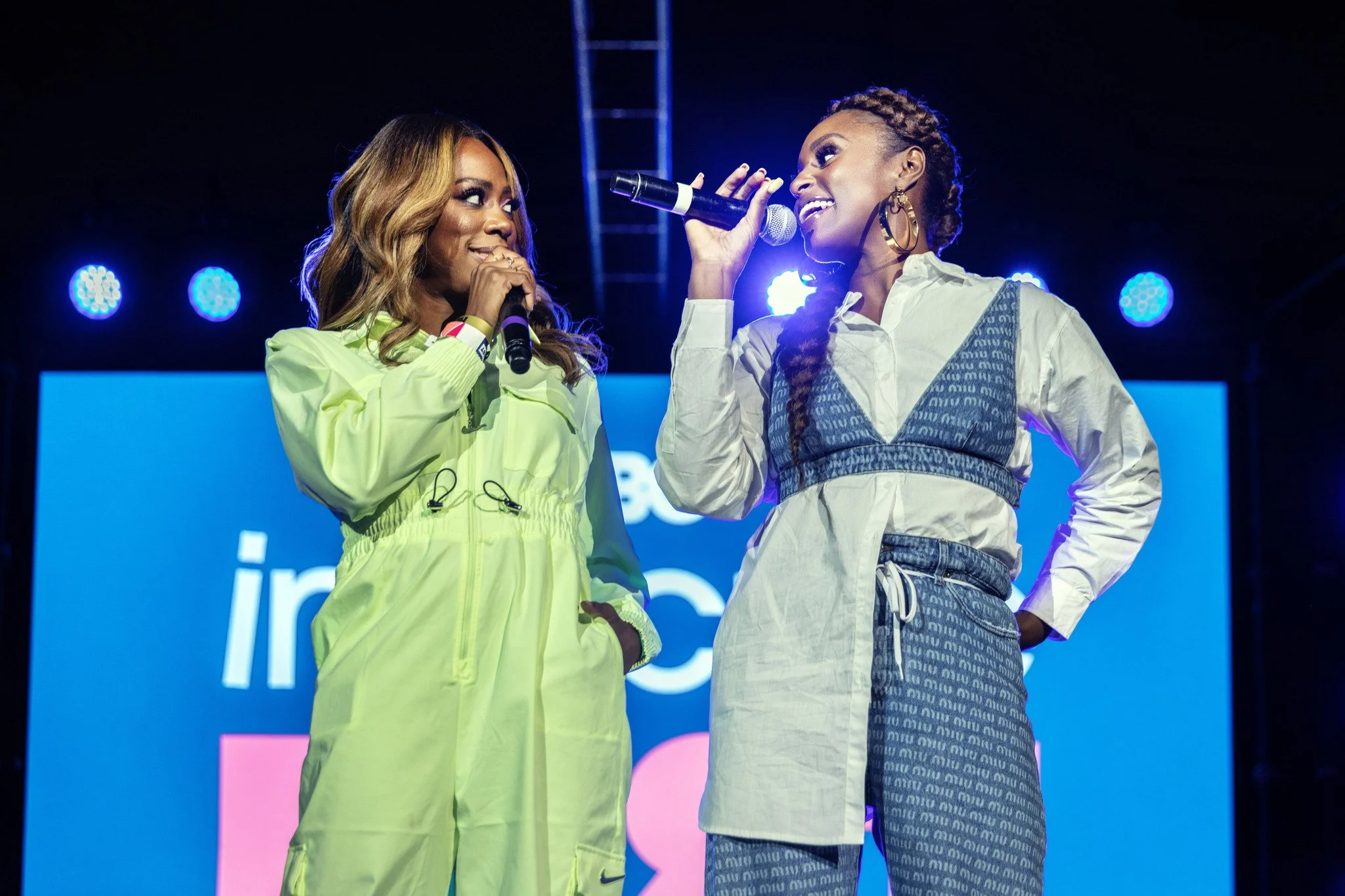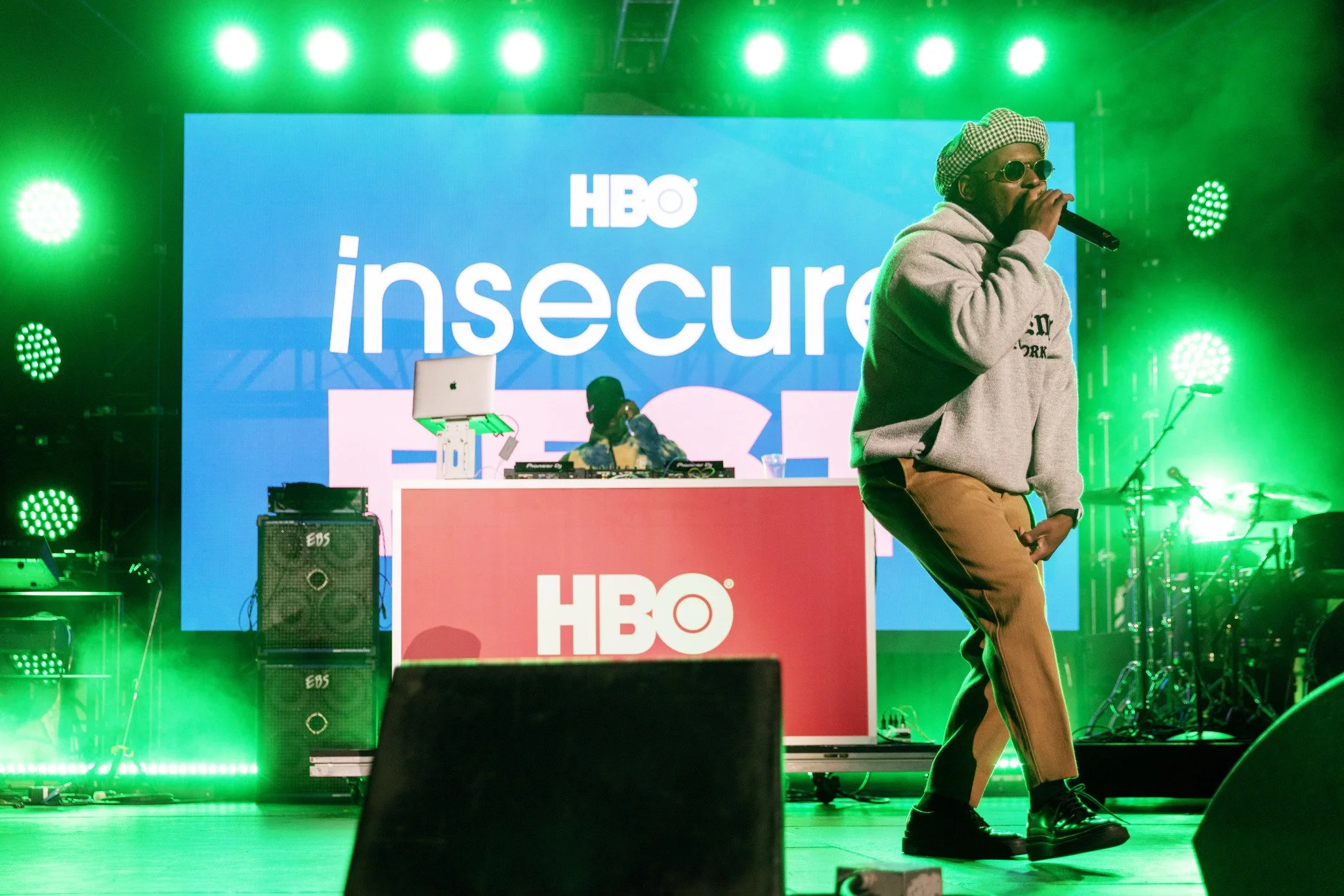 Context: To celebrate the premiere of the fifth season of the acclaimed HBO show Insecure, cast members and 600 specially-invited guests gathered in South Central Los Angeles for a blowout finale party known as InsecureFest. Fans were able to view an exclusive screening of Season 5 Episode 1, pose with recreated scenes from the show, sample local Black businesses in the marketplace and food vendors, and enjoy surprise musical performances by Jazmine Sullivan, Schoolboy Q, Duckwrth, Flo Milli and Kamaiyah.